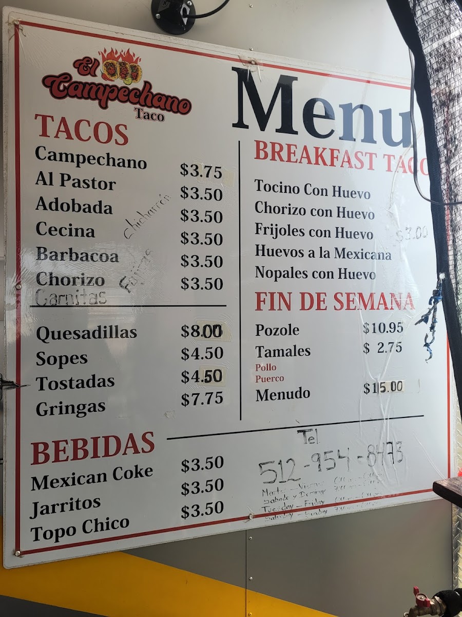The menu at El Campechano Taco in Liberty Hill offers a satisfying variety of flavorful options that will please both meat lovers and vegetarians. Among the standout dishes, the Al Pastor Tacos are a must-try, with their tender, well-seasoned pork that’s cooked to perfection. For those who want to try something even heartier, the Campechano Al Pastor Barbacoa combines the richness of barbacoa with the irresistible taste of al pastor, delivering a truly flavorful bite. Vegetarians can enjoy the Veggie Quesadillas, which are stuffed with a tasty mix of fresh vegetables, perfect for those seeking a lighter, yet satisfying option. To round off the meal, the restaurant serves a variety of refreshing Soft Drinks to complement the savory dishes. With its diverse selection, El Campechano Taco offers something for every palate, making it a great spot to satisfy your taco cravings.